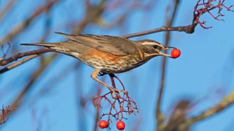 这个问题令人担忧。发射机似乎不太可能一直连着一只活鸟,或许它已经掉下来,挂在树枝上了。为了确认这一点,麦吉尔大学(McGill University)的研究生莫拉莱斯轻轻地摇了摇这棵长满浆果的灌木,羽毛在树枝和阴影中飘落,这引起了她的注意。令她吃惊的是,那只画眉还活得很好,很健康,正在灌木丛里跳来跳去,抗议被打扰了。小鸟在这里逗留的时间比她预期的要长。