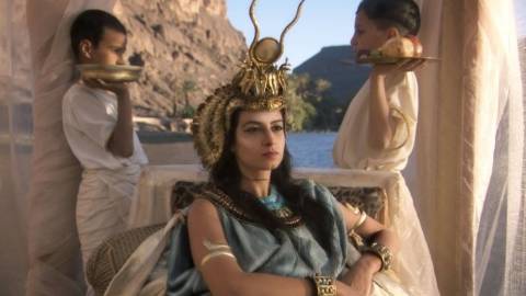 我们知道,在古埃及,女王、王后和神话中的女神形象就应该像这样:权倾天下而又美丽性感,亲近自然,母仪天下,养眼悦目。伊丽莎白·泰勒扮演的这位埃及女王不断在镜头中展示入浴和娇宠的香艳姿态,可能艳后克利奥帕特拉真就是这样生活,因为古埃及的有钱人打扮自己的过程确实冗长而又繁复,首先就是浸泡一个长时间的牛奶浴,浴水中还一定要添加藏红花油。