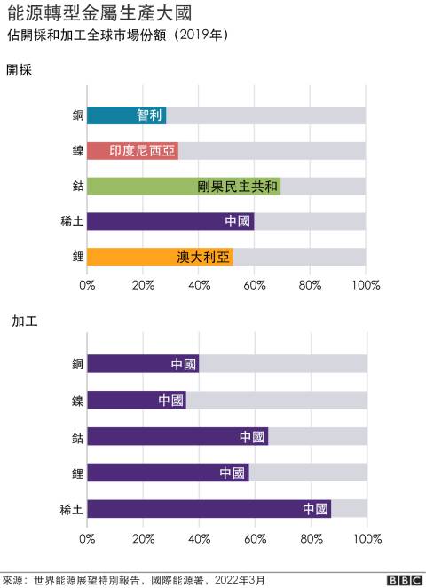 为了评估哪些国家在能源转型中受益最大,金泰润分析了开采和加工这些矿物的领先国家。