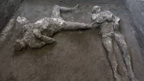 这名男性和女性死者在火山爆发时被火山灰覆盖。