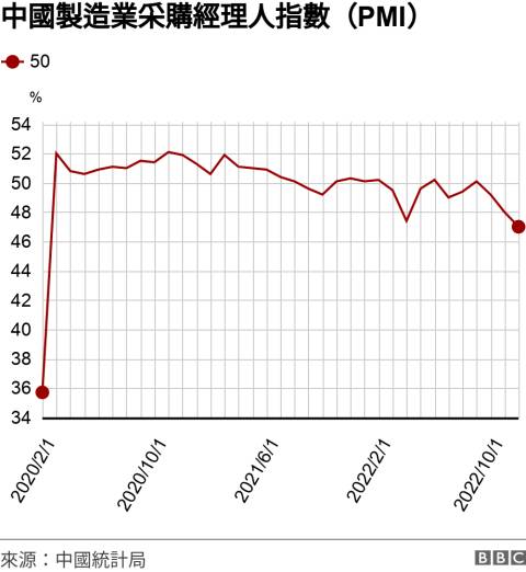 12月31日,中国统计局公布,2022年12月制造业采购经理指数(PMI)为47.0%,该数字低于路透社预测的中值(48%);比前一月下降1个百分点,是2020年3月以来的新低点。